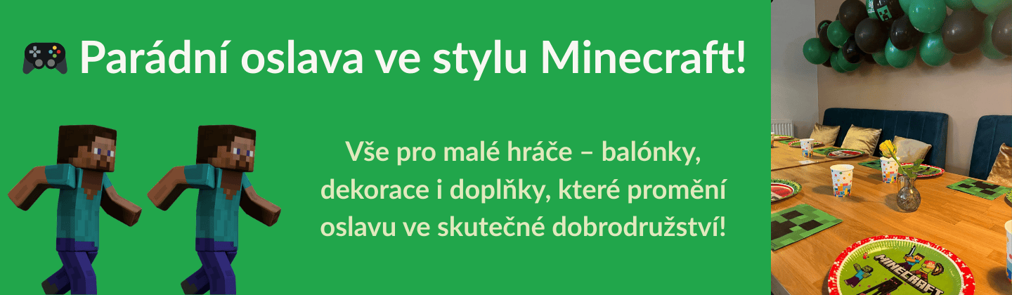 Vaše děti milují Minecraft? S naší výzdobou vykouzlíte nezapomenutelnou párty, kde se budou cítit jako opravdoví hráči! Originální balónkovou girlandu ve stylu Minecraft navíc koupíte jen u nás – sami ji kompletujeme, aby byla opravdu jedinečná.