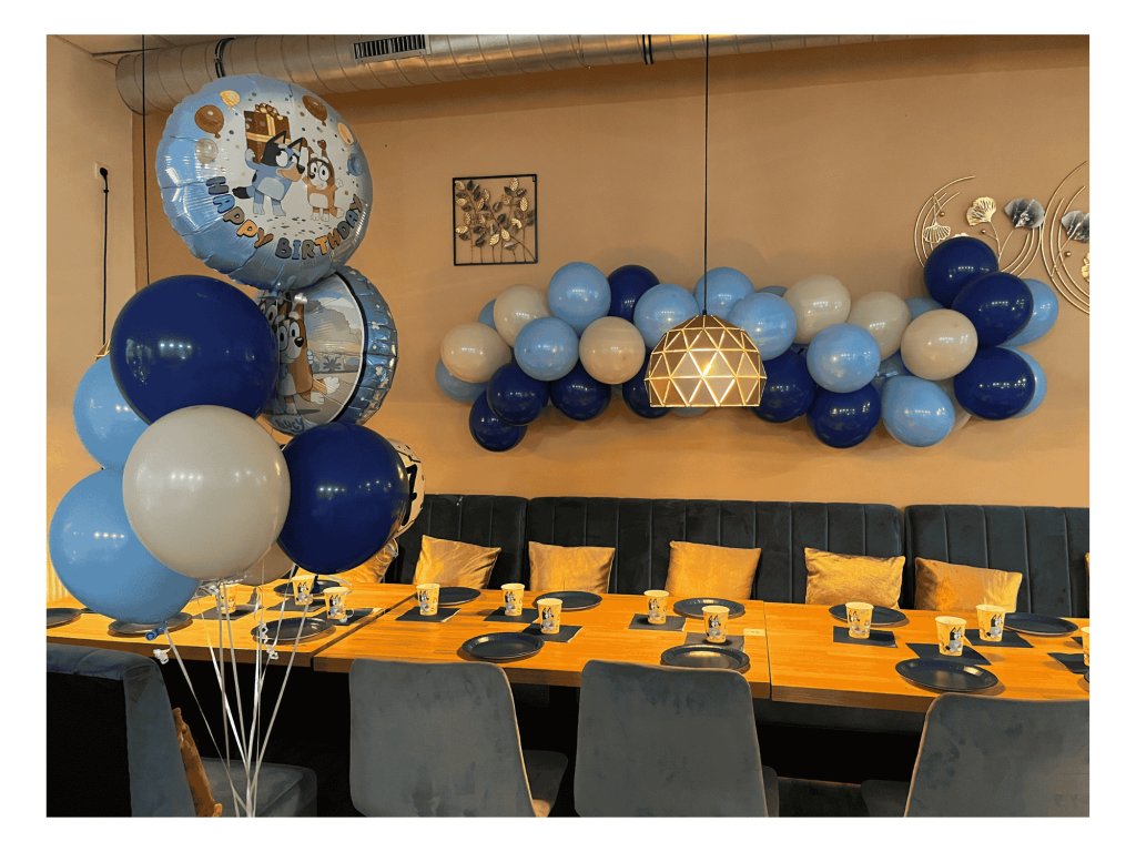 Tato sada je ideální pro narozeniny, křtiny, první oslavy i tématické párty v duchu Bluey – ať už slavíte doma, na zahradě nebo v herničce.