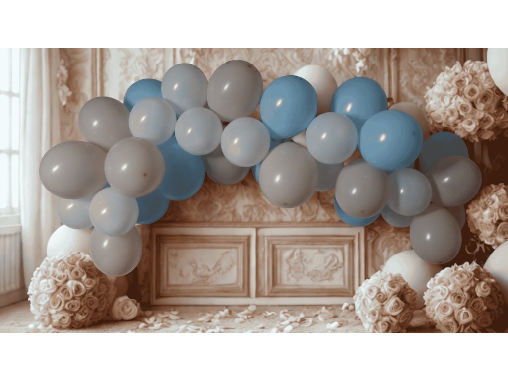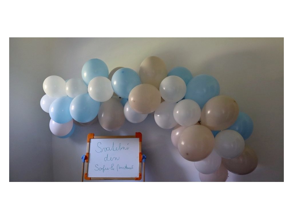 Vytvoř si svou vysněnou svatbu s dekorací, která působí jako z romantického magazínu. Balónková girlanda Svatební Oáza přináší jemnost a čistotu v podobě decentní kombinace barev – bílé, světle modré a latté. Elegantní, ale přitom jednoduchá na sestavení. Vhodná jako: