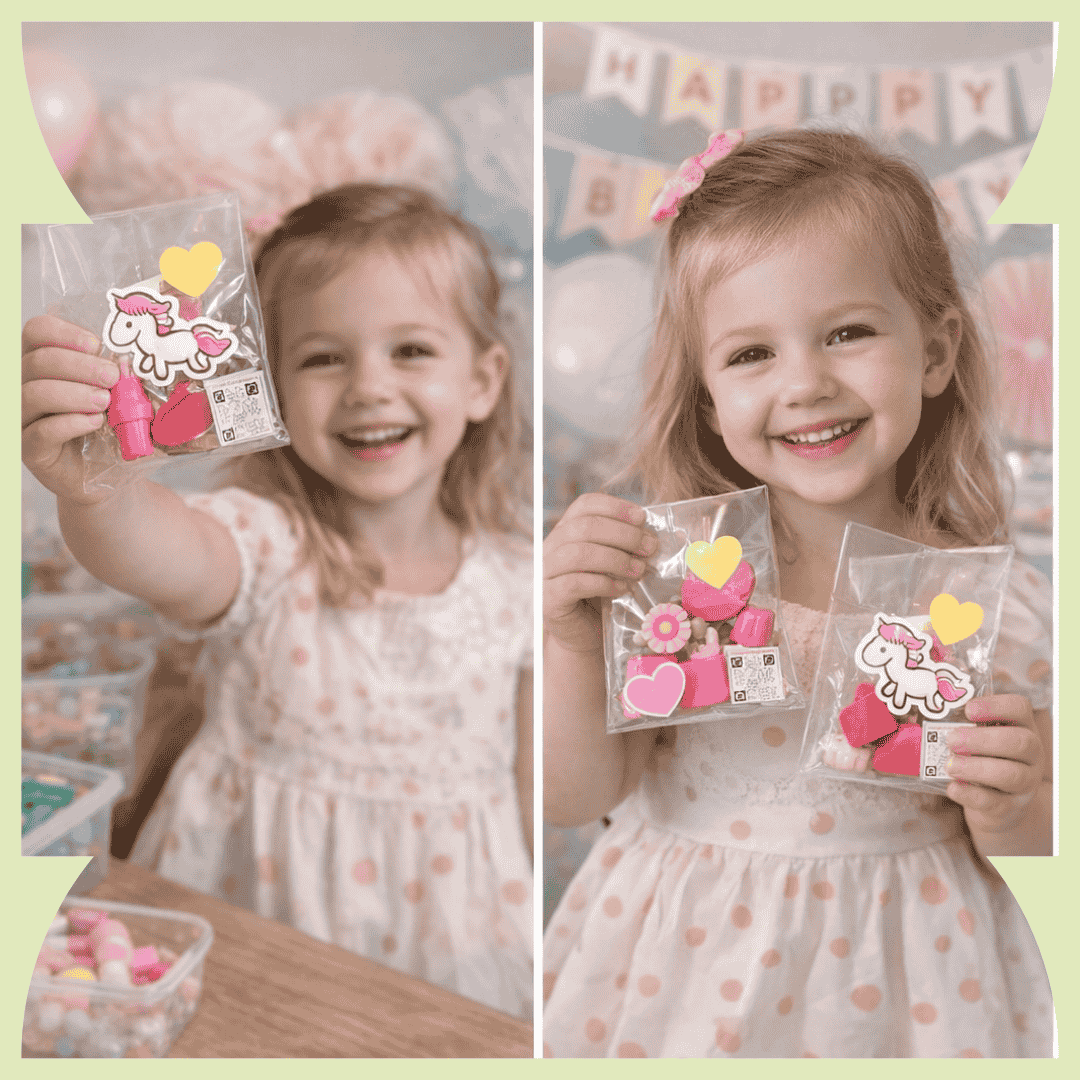 V papírnictví seženete většinou jen větší sáčky, které stojí 7–10 Kč za kus. To je poměrně dost za obyčejný pytlíček. Často navíc nemají potřebný počet pro celou třídu a upřímně – velký sáček s pár drobnostmi nevypadá úplně dobře. A když k tomu připočtete čas, kterého my maminky nikdy nemáme nazbyt, začíná to být pořádná starost.