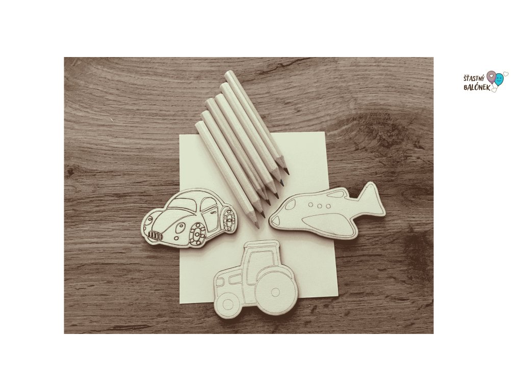 - 3 dřevěné dekorační omalovánky s motivem dopravy