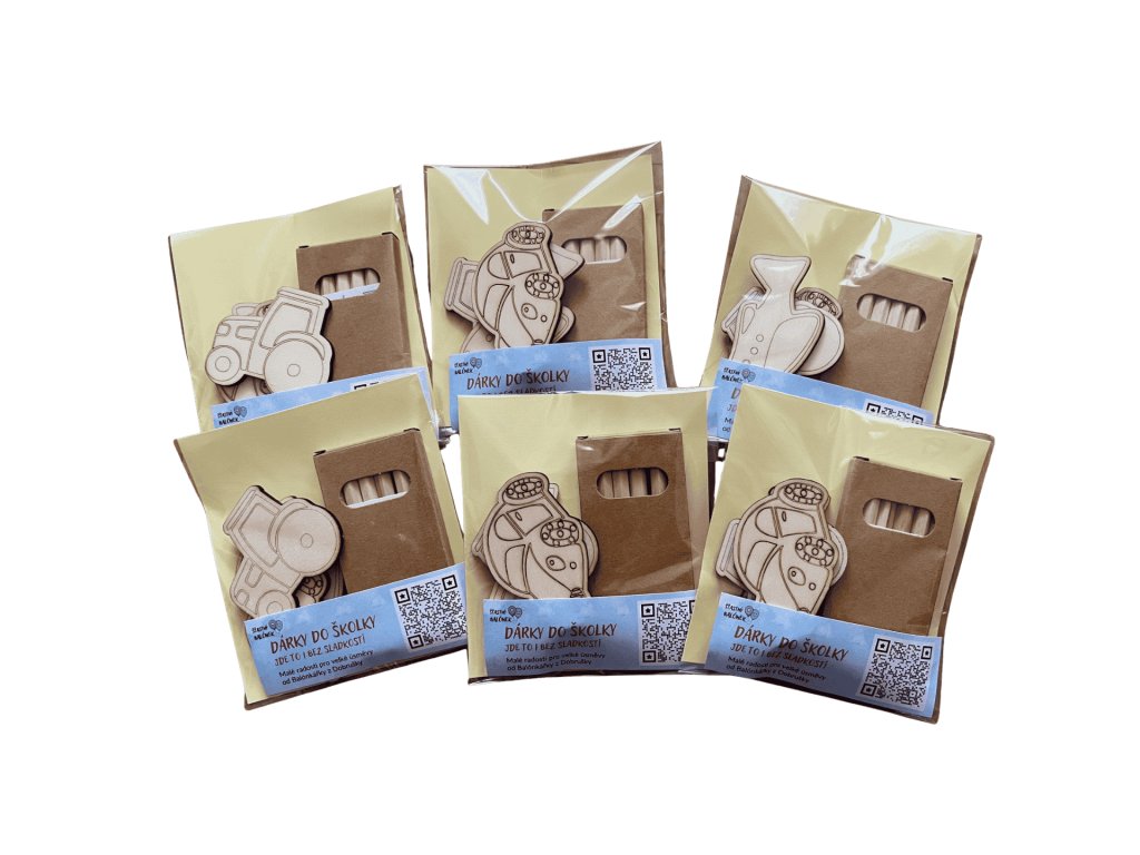 Dárky do školky – doprava, tvořivá dřevěná sada bez sladkostí