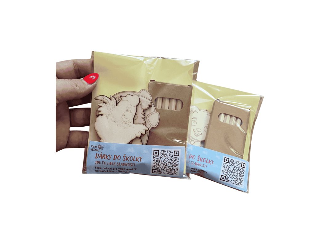 Pokud byste chtěli zakoupit a máte děti už ve škole (ne školkové) můžu dát na obal samolepku Dárky pro děti - napište do poznámky při objednání.