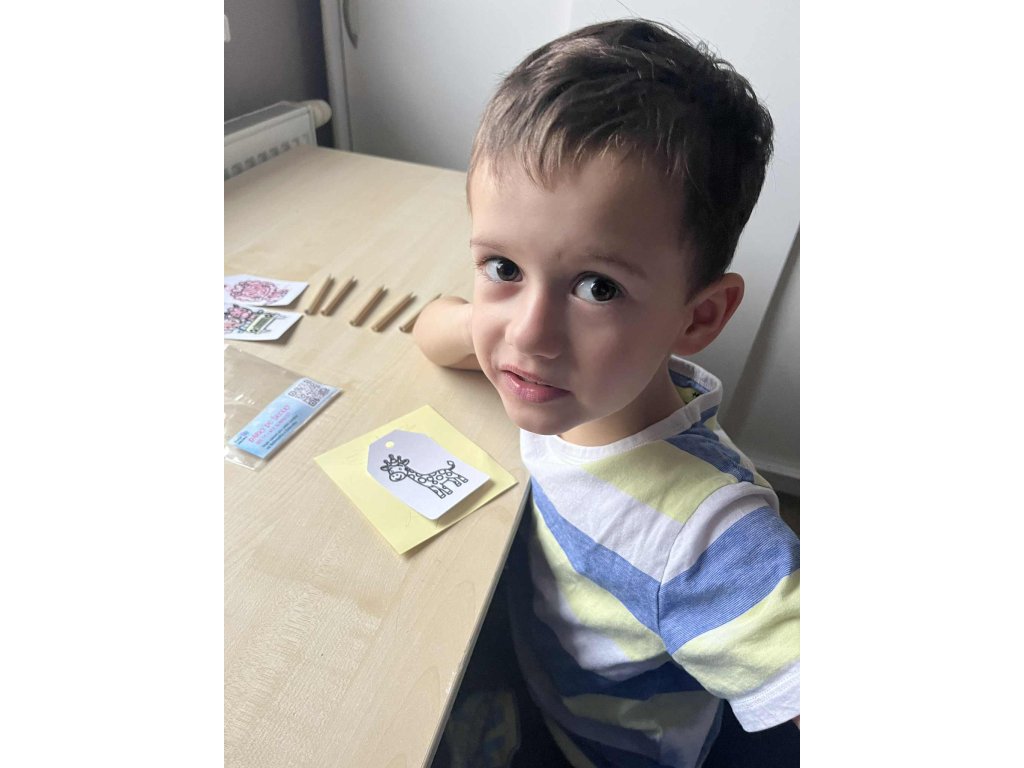 Omalovánkové visačky si vyrábíme sami – od návrhu až po finální výřez, takže v každé sadě je kousek poctivé ruční práce a originality. Každá sada podporuje tvořivost, jemnou motoriku a radost z vlastního tvoření.