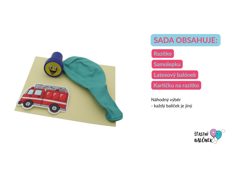 Každý balíček obsahuje latexový balónek v mixu barev, dětské razítko a samolepku s dopravními prostředky, což zaručuje spoustu zábavy a kreativity pro každé dítě. A pro ty, kdo se starají o přírodu, máme i ekologickou variantu v papírovém sáčku.