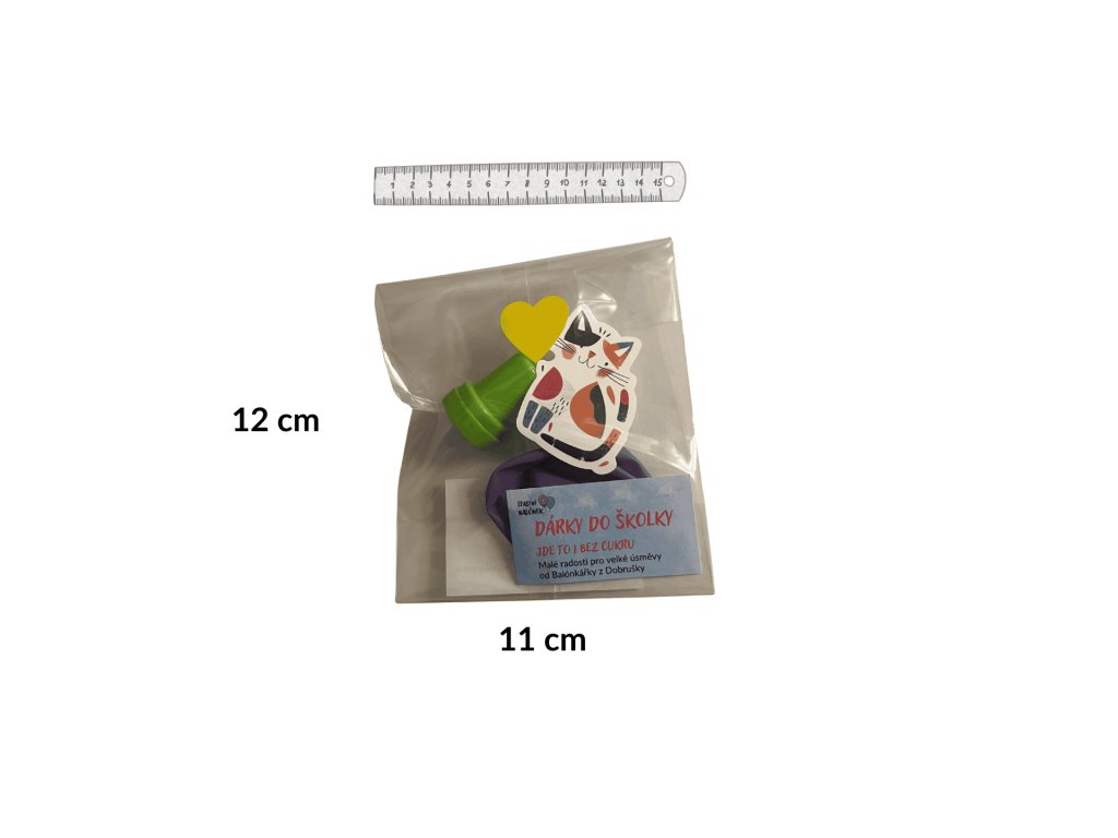 Každý balíček obsahuje latexový balónek v mixu barev, dětské razítko a samolepku s kočičkou, což zaručuje spoustu zábavy a kreativity pro každé dítě. A pro ty, kdo se starají o přírodu, máme i ekologickou variantu v papírovém sáčku.