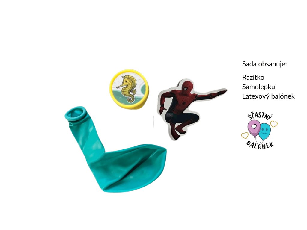 Každý balíček obsahuje latexový balónek v mixu barev, dětské razítko a samolepku se Spidermanem, což zaručuje spoustu zábavy a kreativity pro každé dítě. A pro ty, kdo se starají o přírodu, máme i ekologickou variantu v papírovém sáčku.