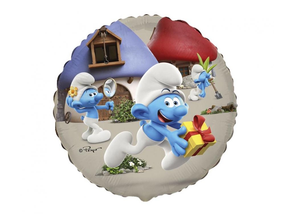 Překvapte malé oslavence balónkem plným modré radosti! Tento kulatý fóliový balónek s oblíbenými Šmouly přináší hravý motiv s dárkem a je již naplněný heliem – stačí vyzvednout a oslava může začít.